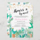 Un baby shower virtuel d'été moderne, tendance et cool de printemps par la conception de courrier avec une typographie de police de script élégante avec cactus peints à la main, succulent, cactus motif aquarelle et confetti de parties scintillant d'or. Parfait pour le baby shower, la douche nuptiale ou le genre révèlent l'événement longue distance.