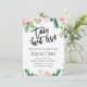 Invitation de fête de couple ou de fiançailles rose avec cactus floral. Cette invitation de fiançailles pour couple présente un titre en calligraphie au pinceau noir et quelques arrangements de cactus en fleurs rose pâle sur le haut et la base de l'invitation. Idéal pour quiconque cherche une invitation de fiançailles sur le thème du taco.