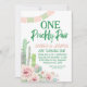 Cactus Twins One Prickly Pair Anniversaire Invitation Cette jeune fille jumelle l'invitation de premier anniversaire comprend un arrangement de cactus à fleurs roses, une bannière et de la calligraphie de brosse moderne en tête d'image.