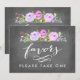Cette impression présente des roses florales aquarellées et dit "Cadeaux. Prenez-en un." en violet sur fond tableau noir