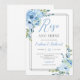 Invitation Cadre argenté floral bleu clair, debout et ensolei