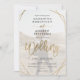 Un faire-part de mariage moderne et simple de 2 photos avec une couverture blanche, cadre de bordure en feuille d'or chic et police de script élégante, ajoutez 2 de votre photo préférée. Un mariage de style contemporain sobre et élégant.