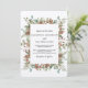 Célébrez votre jour spécial avec cette élégante invitation de mariage au feuillage hivernal, qui présente un charmant cadre de cônes de pin aquarelle, de feuilles d'eucalyptus, de branches de cèdre et de botaniques hivernales douces. Le fond rustique inspiré du kraft ajoute une touche chaleureuse et naturelle, faisant de ce design un choix magnifique pour les mariages d'hiver, les célébrations de Noël, les cérémonies en forêt ou les lieux de réception de montagne cosy.
