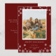 Flocons rouges vifs Carte de vœux photo pour les fêtes. Célébrez les fêtes avec cette élégante carte rouge présentant une photo de famille encadrée avec de délicats flocons de neige dans tous les coins. Le design est rehaussé par une belle calligraphie script, ajoutant une touche classique à vos vœux saisonniers. Parfait pour partager des souvenirs chéris avec la famille et les amis, le message au dos apporte de la chaleur et de la joie à vos fêtes. Personnalisez avec vos détails.