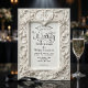 Donnez le ton d'une élégance intemporelle à votre événement de gala avec ce design sophistiqué, mettant en vedette une palette monochrome classique et des motifs de défilement complexes. Ce design présente un rendu numérique haute définition d'un cadre orné et sculptural inspiré de l'art baroque et rococo. La composition visuelle comprend des cygnes symétriques formant un motif de cœur central, entourés de feuilles d'acanthe en défilement et de roses en relief délicates. La palette de couleurs utilise des nuances de blanc doux, d'ivoire, de crème et de gris pâle pour simuler l'apparence du plâtre ou de la pierre sculptée. La typographie associe un script calligraphique romantique et fluide à une police serif traditionnelle pour une lisibilité et un style maximaux. Il s'agit d'une image imprimée plate avec un effet de relief embossé faux, et non