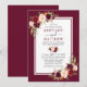 Invitation de mariage élégante avec aquarelle florale bordeaux comprenant des roses bordeaux, des roses roses, des roses rouges et de la verdure botanique - Fond bordeaux