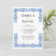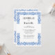 Cette invitation de mariage tendance présente un cadre ornemental vintage bleu avec des fleurs bleues. Profitez-en !