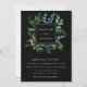 Cadre botanique moderne, faire-part de mariage. Elégante verdure aquarelle dans les tons chic vert et bleu. La carte est dotée d'une couleur arrière - plan noire.