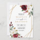Cartes de mariage florales élégantes avec cadre de verdure de magnolia burgundy, designs géométriques modernes burgundy et floral neutre, avec des éléments aquarelles élégants tels que la pivoine rose, l'eucalyptus et la verdure en blanc, bleu marine blush ou pêche rose et plus.
