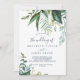 Ce cadre verdoyant d'été tout en un faire-part de mariage est parfait pour un élégant mariage de mi-été. Le design botanique présente un agencement luxuriant d'eucalyptus couleur aquarelle peint, de verdure et de feuilles verts avec de subtils ressorts de fleurs roses rousses. Enregistrez du papier en incluant les détails au verso du faire-part de mariage plutôt que sur une carte de boîtier séparée. Inclure également les informations RSVP si votre invité répondra par voie électronique (facultatif).