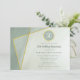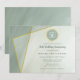 Cette invitation de fête d'anniversaire de mariage de 50 ans au design simple et moderne de style géométrique présente un thème de couleur jade grisé avec des éléments calligraphiques, des accents de cadre doré asymétriques et une apparence de texture de marbre - personnalisez les éléments de texte pour toute célébration d'anniversaire de mariage ou de naissance - par katz_d_zynes