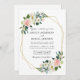 Invitation Cadre doré floral aquarelle rose élégant