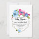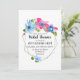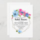 Un magnifique bouquet de fleurs bleu clair, rose vif et bleu foncé orne cette invitation moderne de baby shower de mariage.
