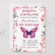 Invitation Cadre floral aquarelle Papillon rose Anniversaire