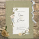 Ce beau design délicat est élégant mais simple. Il comporte un double cadre délicat avec des fleurs boho séchées dans des tons de pêche blush, de crème, de beige et de vert avec un cadre en sauge verte en détresse autour de tout cela. Le fond est un sauge vert en détresse complémentaire. Ce design fait partie de la collection Dried Boho Floral Frame Green Wedding Suite créée par Simply Farmhouse Press.