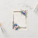 Créez vos propres invitations avec ce design floral aquarelle rose et bleu avec cadre doré, abordable.