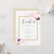 Les feuilles d'eucalyptus et de myrte, dessinées à la main au crayon graphite classique et superposées en or (numériquement), ainsi que des roses aquarellées et au crayon en rose et violet, font de ce modèle d'invitation pour Sweet 16 un ensemble moderne, sophistiqué, élégant et chic qui présente également une calligraphie script moderne. Un choix charmant pour une fête Sweet 16 avec un thème rustique, ou un thème jardin, ou un thème chic campagne.
