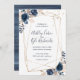 Faire-part de mariage géométrique en marine, or, et rougir avec des fleurs accentue le cadre. Des éclats d'aquarelle dorée ornent le dessus de la carte. Le dos de la carte est conçu avec un arrière - plan bleu marine. Vous pouvez ajouter tous les détails de votre mariage à la carte. Si vous avez besoin d'apporter d'autres modifications, vous pouvez cliquer sur le lien/bouton de personnaliser et modifier des choses comme la taille de police, le style de police, la couleur de police, etc.