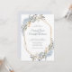 Faire-part de mariage romantique à cadre géométrique or avec fleurs et feuilles bleues poudrées peintes à l'aquarelle. Ajoutez vos détails de mariage à cette invitation de couronne botanique moderne. Ce design élégant est idéal pour les mariages de printemps et d'été.