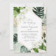 vert tropical cadre géométrique blanc design floral. Le texte et les couleurs peuvent être personnalisés pour correspondre à votre thème mariage.