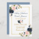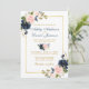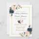 Elégante aquarelle bleu foncé rose flou floral, carte Faire-part de mariage cadre or