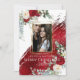Vos vœux de fin d'année sur fond photographique - cadre photo triple or - présentent un grand coup de pinceau audacieux dans un rouge cramoisi métallisé en diagonale sur la page et derrière le cadre photo. La verdure d'eucalyptus et les bouquets de pivoines de couleur rouge écarlate et de crème ivoire ornent les coins. Conception créée par © WhimsicalArtwork™ Personnalisez le texte, le style de police, la couleur et la taille. Nous avons créé ce modèle pour vous permettre de le personnaliser facilement avec vos propres informations. Cela fait partie d'une suite complète de papeterie de mariage avec de la papeterie assortie pour les mariages, les baby showers et d'autres événements.