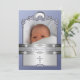 Garçons Cadre bleu avec Argent Ornate Trim et Bijoux Cross, Christening Baptism Invitation. Customisez avec vos propres détails et Photo.