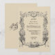 Très ornées invitations de mariage antiques de style baroque rococo avec guirlandes de fleurs, oiseaux, chérubins et deux cœurs enflammés liés par une couronne de fleurs. Vous pouvez facilement modifier le texte et changer la couleur de fond dans ce modèle de conception.