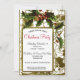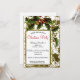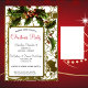 Un cadre doré en dentelle, avec des feuilles saints et des baies, est stylisé dans un style victorien vintage pour entourer une invitation à la fête de Noël. Le texte est en fontes contrastées - un script élégant et croustillant sans serif, le tout en noir, sauf pour la "fête de Noël", qui est imprimé dans un script rouge. Votre invitation est centrée dans un cadre décalé vers la partie inférieure gauche à l'intérieur de la dentelle d'or contre blanc. La carte de retour est blanche et constitue un endroit idéal pour vous orienter si vous avez besoin d'aide pour trouver votre lieu de résidence.