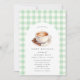 Invitations de douches pour bébés au café avec motif vert neutre en vichy.