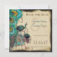 Deux paons assis sur une bûche avec une cage à oiseaux fantaisiste et des plumes de paon sur un parchemin faux brûlé, funky et mignon, Save the Date. Rustique Médiéval Renaissance thèmes paon oiseau vintage ou Rustique Ferme grange cage à oiseaux thèmes paon