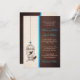 Ces invitations de mariage comprennent une cage aux oiseaux fantaisie avec des tourbillons et un coeur bleu turquoise, et deux oiseaux mignons, en chocolat, accrochés à un arrière - plan en papier texturé en ivoire avec une écriture passée. Un ruban bleu vif et brillant sépare une barre marron chocolat, qui contient le libellé faire-part de mariage en ivoire et turquoise. Le libellé de l'invitation, en alternance de scripts et de polices serif classiques, est entièrement personnalisable.