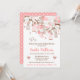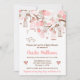 Cette invitation au baby shower mignonne et capricieuse présente d'élégantes cages d'oiseaux et des fleurs en rose et marron. Le texte combine écriture manuscrite et polices sans serif pour un look élégant et moderne. Il est parfait pour un baby shower rustique de printemps ou d'été.