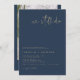 Cette invitation de renouvellement de vœux présente une police manuscrite audacieuse et un design moderne minimaliste avec une combinaison de couleurs bleu marine et or. Ajoutez une photo au dos pour une touche personnelle.
