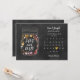 Cette jolie carte de dattes comporte un pot de mason fleuri à côté d'un calendrier et joli coeur d'amour en or mettant en valeur votre date spéciale sur un arrière - plan de tableau noir.