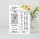 Calendrier photo Sauvegarder la date, Mariage enregistrer la date, tournesol design floral. Style boho romantique chic. Ajoutez votre propre libellé dans le modèle, pour déplacer les coeurs, cliquez sur personnaliser, faites défiler et cliquez sur "customiser plus loin"