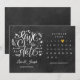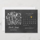 Cette carte de rendez-vous rustique comporte un calendrier et un joli cœur d'amour doré qui met en valeur votre date spéciale sur un fond de tableau noir. Conçue par Thisisnotme© ***POUR DÉPLACER LE CŒUR VERS VOTRE DATE SPÉCIALE, REGARDEZ À DROITE DE L'IMAGE DU PRODUIT OÙ IL EST ÉCRIT “PERSONNALISER LE MODÈLE”. SI VOUS CLIQUEZ SUR LE TEXTE BLEU “DÉTAILS”, VOUS VERREZ OÙ VOUS POUVEZ PERSONNALISER LE TEXTE. TOUT EN BAS, IL EST ÉCRIT “CLIQUEZ POUR PERSONNALISER DAVANTAGE”. CLIQUEZ DESSUS ET VOUS POURREZ DÉPLACER LE CŒUR VERS LA DATE DE VOTRE CHOIX.***