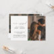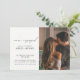 Cette belle et moderne Calligraphie Typographie 2 Photo QR Code Engagement Party Invitation comprend un script de calligraphie noir et blanc et moderne toute casquette serif conception de typographie sur le devant, avec votre photo d'orientation verticale / portrait à droite. L'arrière de l'invitation présente votre photo horizontale de fiançailles, et le lien de code QR vers votre site Web pour plus de détails. Un bel invitation ! Copyright Anastasia Surridge, tous droits réservés.