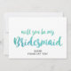 Cette calligraphie d'aquarelle vous sera ma carte de demoiselle d'honneur est parfaite pour un mariage à thème de plage tropicale. Le design amusant et énergique est composé d'une police de script d'aquarelle vert turquoise et bleu aqua ombre. Customisez la carte avec le nom de la demoiselle d'honneur et un court message. Conçu avec soin par Miriam à Fresh & Yummy Paperie. Veuillez me contacter pour toute personnalisation de conception dont vous avez besoin. Pour la coordination des articles, veuillez visiter mon magasin Zazzle :