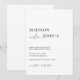 Ces invitations contemporaines de mariage offrent une approche moderne à une invitation en noir et blanc. Les polices sont une alternance de serif noir gras et de calligraphie de style manuscrit. Le et a un délicat swash de coeur et se trouve dans le même corps que la réception à suivre.