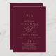 Ce monogramme romantique de calligraphie bordeaux est parfait pour un simple mariage. Le design classique moderne comprend des tourbillons fantaisistes et des fleurs fantaisistes avec une magnifique typographie de feuille d'or en faux champagne. Remarque : Ce design ne comporte pas de véritable feuille d'or. C'est un graphisme de haute qualité fait pour ressembler à du papier doré.