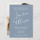 Faire-part de mariage photo avec calligraphie de texte simple moderne - comporte les noms des mariés, grands et gras dans une typographie moderne et script. Le verso du faire-part comporte une belle photo des mariés. Le faire-part fera partie d'une suite de mariage et sera disponible en différentes couleurs. Vous pouvez facilement changer la couleur de fond pour l'adapter à votre thème de mariage. Présenté en bleu poussiéreux.