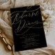 Cette romantique calligraphie dorée invitation à la répétition noire est parfaite pour une simple répétition mariage. Le design classique moderne comprend des tourbillons fantaisistes et des fleurs fantaisistes avec une magnifique typographie de feuille d'or en faux champagne. Remarque : Ce design ne comporte pas de véritable feuille d'or. C'est un graphisme de haute qualité fait pour ressembler à du papier doré.