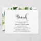 Cette carte d'invitation pour brunch à dos floral de calligraphie méridionale est parfaite pour un événement moderne. Le design se compose d'une typographie noir et blanc rustique mais élégante avec de magnifiques fleurs d'aquarelle blanche sur le support.