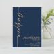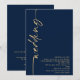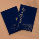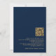 Code QR de calligraphie élégante Mariage Or Navy. Ajoutez votre code QR sur votre site web de mariage au verso fait de ceci une option pratique pour vos invités pour répondre et voir tous les détails sans avoir besoin de cartes de réponse et de détails séparées. Le script de l'ensemble élégant est tourné vers la gauche, avec tous les détails élégamment à droite avec beaucoup d'espace blanc pour une sensation contemporaine. Personnalisez facilement avec vos détails. Et changez la couleur du texte et de l'arrière-plan si vous le souhaitez via l'option modifier davantage.