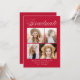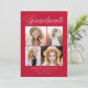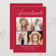 Cartes d'invitation élégantes pour une fête de remise de diplômes avec "Diplômé" affiché en haut en écriture calligraphiée blanche sur fond rouge. Le design présente quatre photos du diplômé disposées dans une mise en page de type collage avec le nom du diplômé, le nom de l'école et l'année de remise des diplômes indiqués ci-dessous. L'invitation à la fête de remise de diplômes avec 4 photos présente au verso les détails de votre fête. L'élégante invitation à la fête de remise de diplômes est parfaite pour les fêtes de fin d'études secondaires et universitaires.