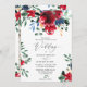 Un automne rustique hiver élégant bordeaux et bleu marine couleur d'eau fleurie et verdure faire-part de mariage calligraphie feuille, ajoutez votre photo. Avec un magnifique script de calligraphie de brosse.
