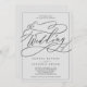 Ce faire-part de mariage de calligraphie gris romantique est parfait pour un mariage simple. Le design classique moderne comprend des tourbillons fantaisistes et des fleurs fantaisistes avec une superbe typographie élégante et en lettrage à la main et un cadre formel.