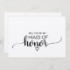 Cette simple carte d'honneur de calligraphie kraft est parfaite pour un mariage à thème rustique ou moderne. Le design minimaliste est doté d'une police de caractères élégante et d'un coeur féminin. Le dos est vide, vous aurez donc beaucoup de place pour écrire une note personnalisée réfléchie.