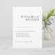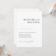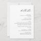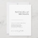 Vous recherchez une faire-part de mariage simple et moderne, élégante et abordable ? Découvrez cette belle invitation tout-en-un avec script de calligraphie minimaliste. L'avant et l'arrière de l'invitation sont conçus avec une touche fantaisiste, parfait pour un mariage romantique et peu cher. Le design noir et blanc rend cette invitation classique et chic, et vous pouvez inclure tous les détails de la réception et RSVP sur la même carte. Customisez cette invitation avec vos propres détails et jetez un oeil au reste de la collection pour voir tous les articles correspondants disponibles. Avec sa belle typographie et son design moderne, cette invitation tout-en-un est le choix idéal pour tout mariage minimaliste.